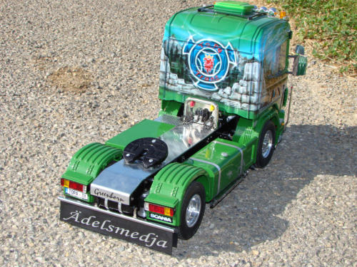 Hier ein paar technische Daten: Lenkachsen: Schulz-Tec Getriebe: Veroma 3-Gang Antriebsachse: Tamiya mittels Servo sperrbar Felgen/Reifen: Alufelgen mit Vollgummi Bereifung Beleuchtung: LED und Glühbirnen Elektronik: Brixl Elektronik, Aeronaut Muli 20, Gewu Infrarot, Beier Elektronik USM-RC2 Lackierung: RAL 6002 und RAL 6018 Airbrush von Lothar Bohn