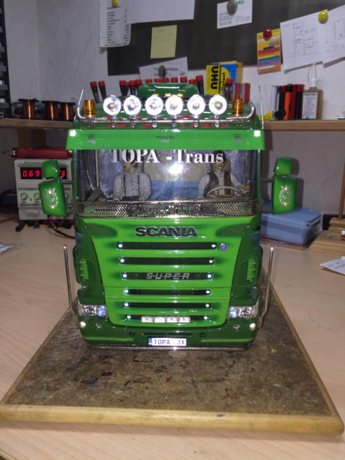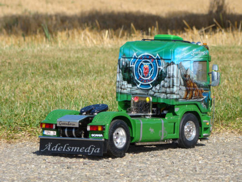 Hier ein paar technische Daten: Lenkachsen: Schulz-Tec Getriebe: Veroma 3-Gang Antriebsachse: Tamiya mittels Servo sperrbar Felgen/Reifen: Alufelgen mit Vollgummi Bereifung Beleuchtung: LED und Glühbirnen Elektronik: Brixl Elektronik, Aeronaut Muli 20, Gewu Infrarot, Beier Elektronik USM-RC2 Lackierung: RAL 6002 und RAL 6018 Airbrush von Lothar Bohn